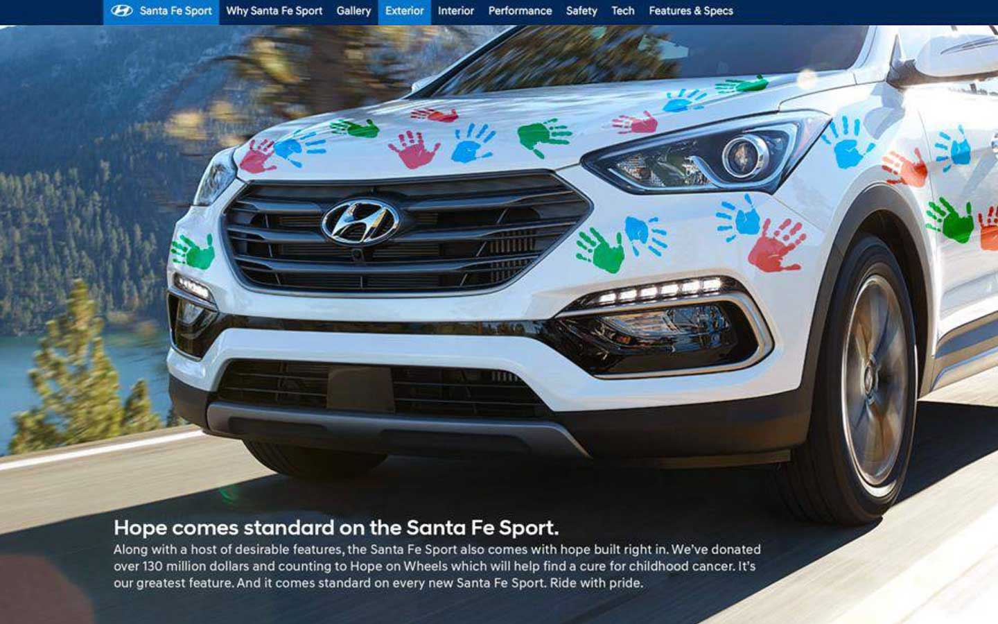 Nothing gets interactivity going in a car site like color swatches allowing you to try out colors of th car. So the addition of the handprint got people to playfully try it out and learn what Hope on Wheels is about.