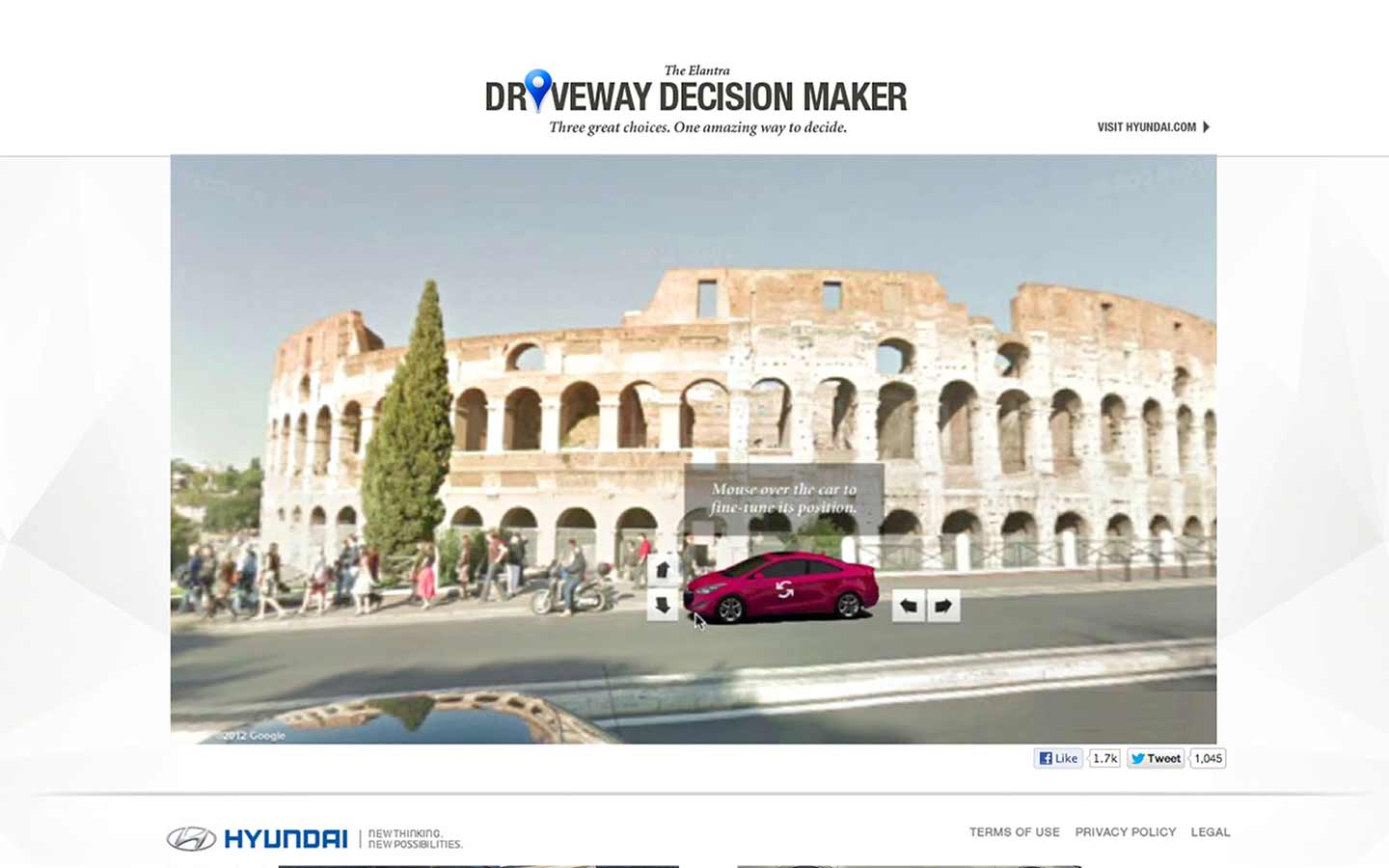 People quickly began to explore the even-lighter side of driveway decision making, taking their Elantras on tours to the Eiffel Tower, The Colosseum, down the Vegas strip, over the Golden Gate Bridge and more. People were even discovering how to pay the President a visit inside the WhiteHouse.