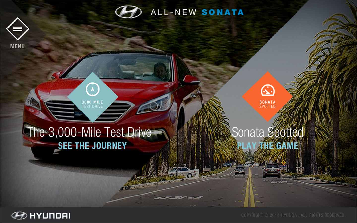 The 3,000 Mile Test Drive coupled with Sonata Spotted proved to be a powerful way to introduce the all-new Hyundai vehicle. The videos gathering well over a combined 5 million views while the Spotted Game logged thousands of guesses and a share of industry awards like both FWA's Site of The Day and Mobile Site of The Day.